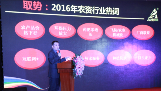 新葡的京集团35222vip药业集团国内制剂营销中心市场总监陆元丁对农资行业的现状进行了解读并从取势、明道、优术三个方面阐述了奥迪斯下一步的战略规划。他提到,奥迪斯具备清醒的自我认识,看清并把握了农资行业的发展趋势,将凭借其在定位、产品、团队方面的优势抓住发展的机遇。他强调,奥迪斯有着清晰的战略规划,定位于做农药杀菌剂的领航者,专注于高端杀菌剂,在2017年,奥迪斯将通过细化管理,打造大品,强化队伍,提升服务四方面切实将战略转化为实际的行动和成果。他表示,奥迪斯愿与经销商朋友通力合作,共同打造厂商利益共同体、命运共同体,区域作物综合服务平台。