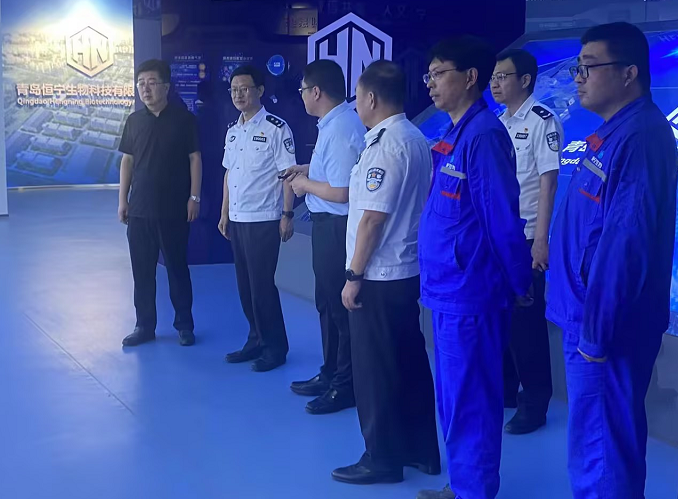 15时20分,领导一行抵达新河化工基地产业园青岛恒宁生物有限公司。在恒宁生物展厅,领导一行详细了解了集团的企业文化、发展愿景,并问询了恒宁的项目建设和安全管理相关情况,集团总裁向来访领导一行详细汇报了企业生产经营情况。参观过程中,领导对企业取得的成就以及在安全方面的提升予以高度评价和充分肯定。