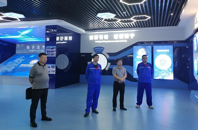 当日,肖局长一行首先参观了展厅,详细了解了集团的企业文化、发展愿景,并问询了一期二期三期的主要项目、工艺、产品,以及生产过程中如何实现工艺的稳定性和各种连锁的可靠性。随后,肖局长一行来到厂区,进行了现场指导工作,随行专家就恒宁生物目前现状进行了评价和指导。参观过程中,肖局长对恒宁生物的自动化、智能化程度予以高度评价和充分肯定。