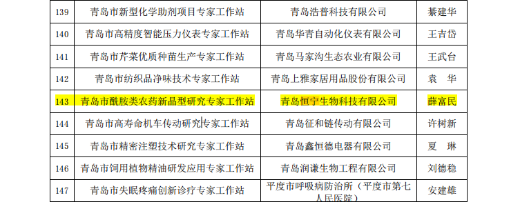 此次获评青岛市专家工作站,恒宁生物将以此为契机,不断引进人才、不断创新,专精科研,引领行业发展,进一步推动农药行业产学研创新,为提升青岛市农药行业的核心竞争力做出积极贡献。